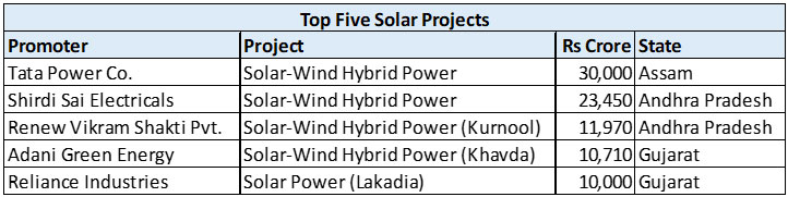 Within Electricity, Renewable Power continued to dominate. Investment in Renewable Power rose by 34.07 percent to Rs 12,57,971.47 crore from Rs 9,38,321.08 crore. Its share in total fresh investment improved marginally from 21.25 percent to 21.59 percent. Solar Power remained the largest component, with investment rising from Rs 6,63,106.18 crore to Rs 9,09,027.40 crore. In the Wind Power sector, investment increased from Rs 2,74,498.21 crore to Rs 3,35,671.87 crore. The major projects in this segment included the following: